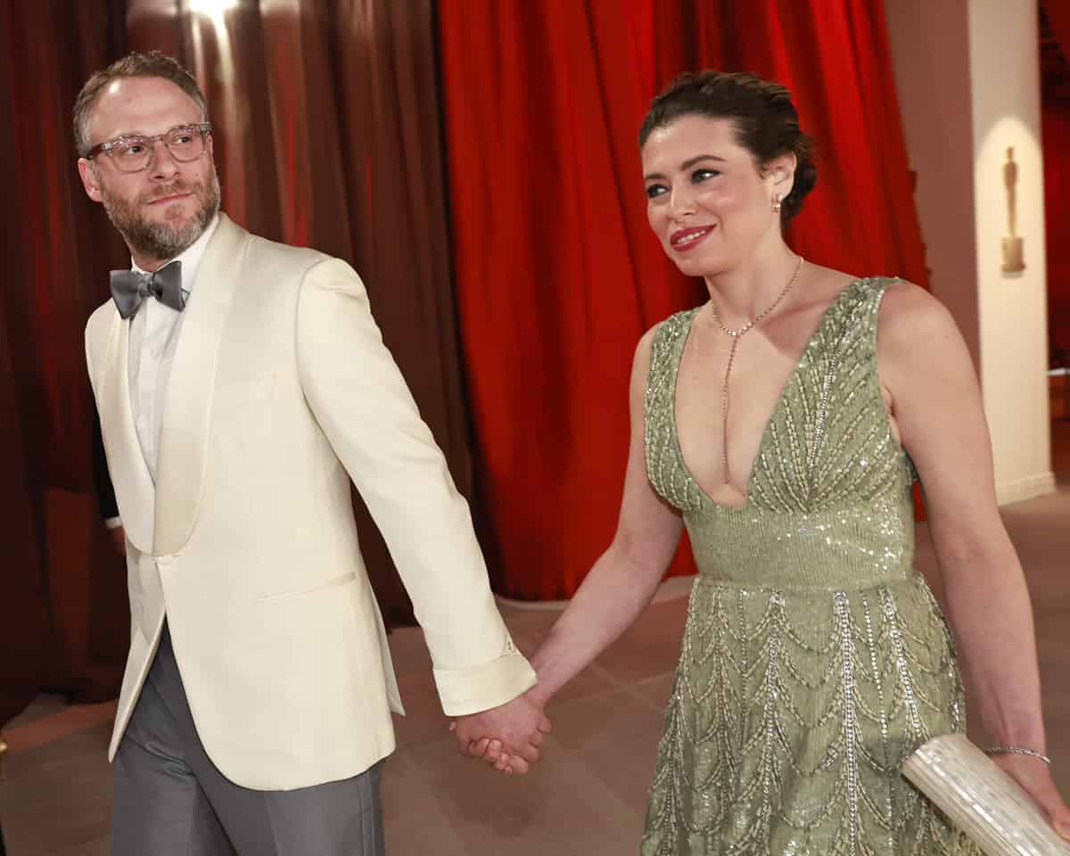 HOLLYWOOD, CALIFORNIA – MARCH 12: (L-R) Seth Rogen and Lauren Miller attend the 95th Annual Academy Awards on March 12, 2023 in Hollywood, California. (Photo by Emma McIntyre/Getty Images)