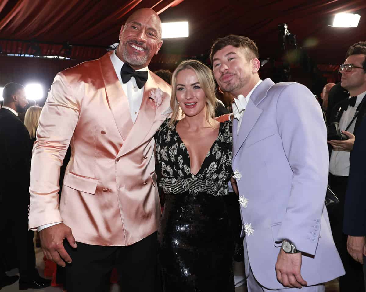 HOLLYWOOD, CALIFORNIA – MARCH 12: Dwayne Johnson, Alyson Sandro and Barry Keoghan attend the 95th Annual Academy Awards on March 12, 2023 in Hollywood, California. (Photo by Emma McIntyre/Getty Images)