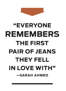 “We’re not going for a yoga pant, says Ahmed. “We want our jeans to be functional, but luxurious, so we’re experimenting with wool and cashmere blends in denim, utilizing a knit fabrication we’ve developed that has superior retention and won’t get baggy after a few wears. We also have a vintage capsule where recycled jeans and cotton are woven into the denim, so it’s new jeans made from old materials.”